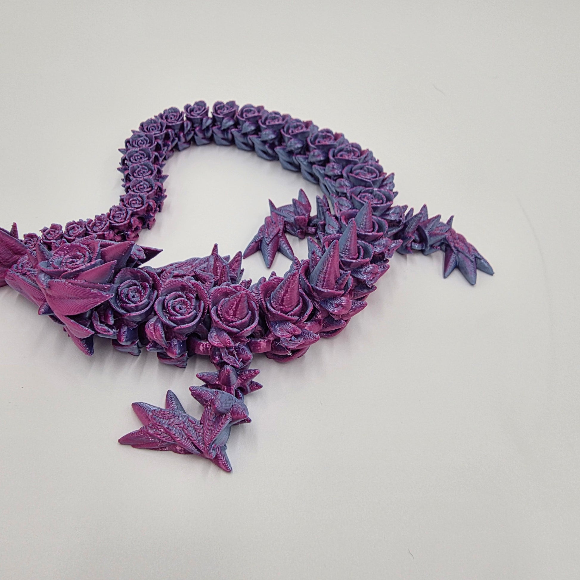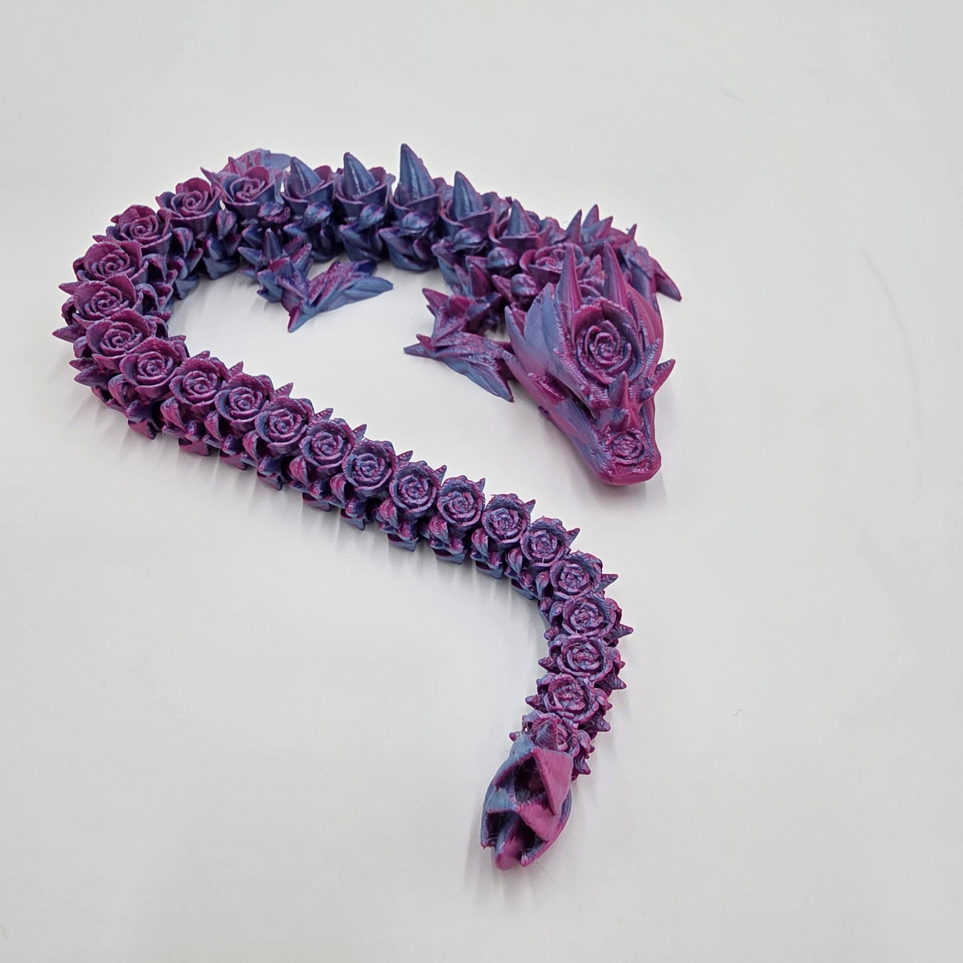 Grace and power come together in this Crystal Rose Dragon, a stunning 3D printed creation featuring roses and thorns intertwined along its body. This elegant dragon combines beauty and ferocity, with crystalline textures and detailed floral accents that make it a true showpiece for collectors and fantasy lovers alike.