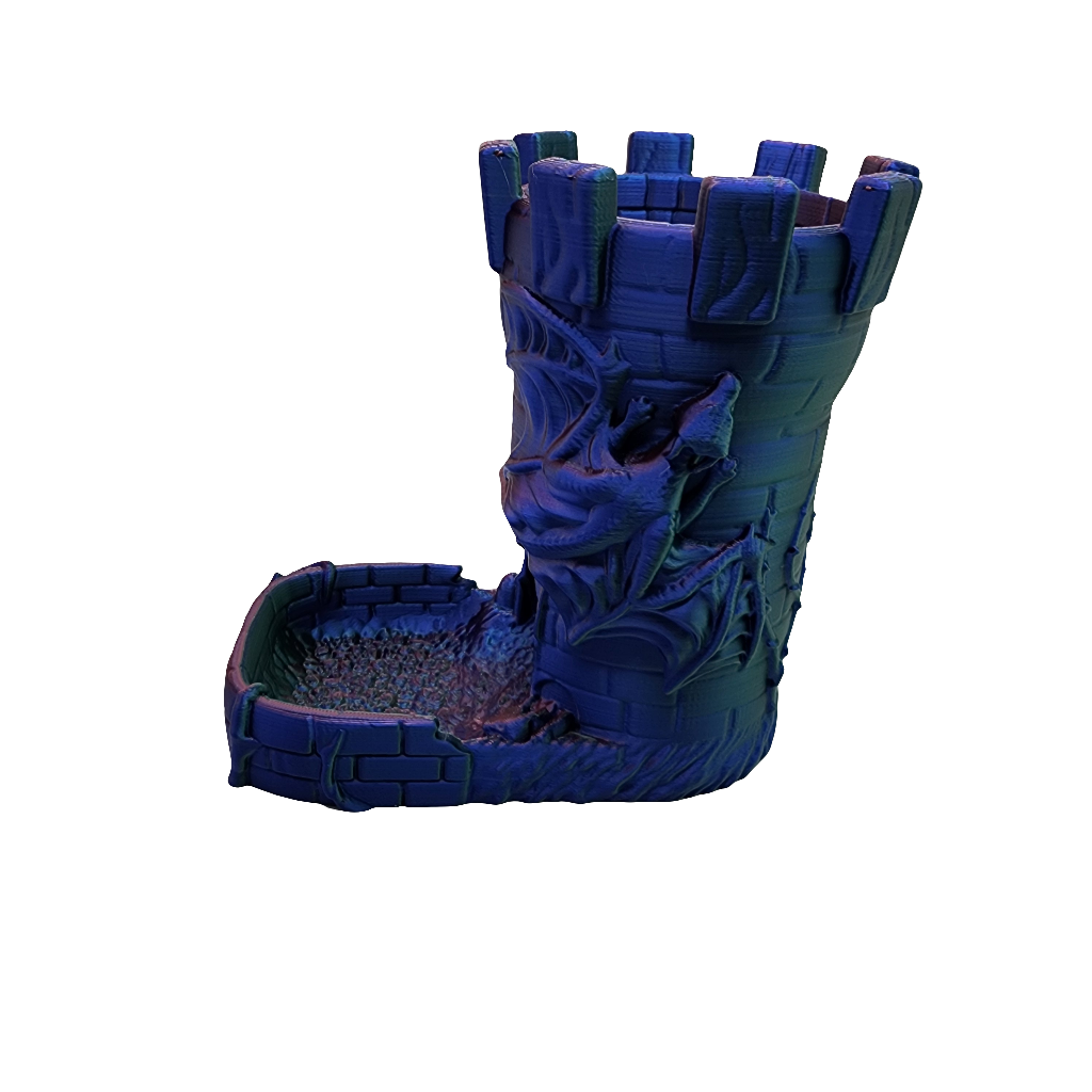 Elevate your tabletop adventures with this impressive Dragon Dice Tower, intricately crafted with a powerful dragon perched proudly atop its structure. Watch as your dice cascade through the tower, guided by carefully designed internal pathways to ensure truly random and exciting rolls.