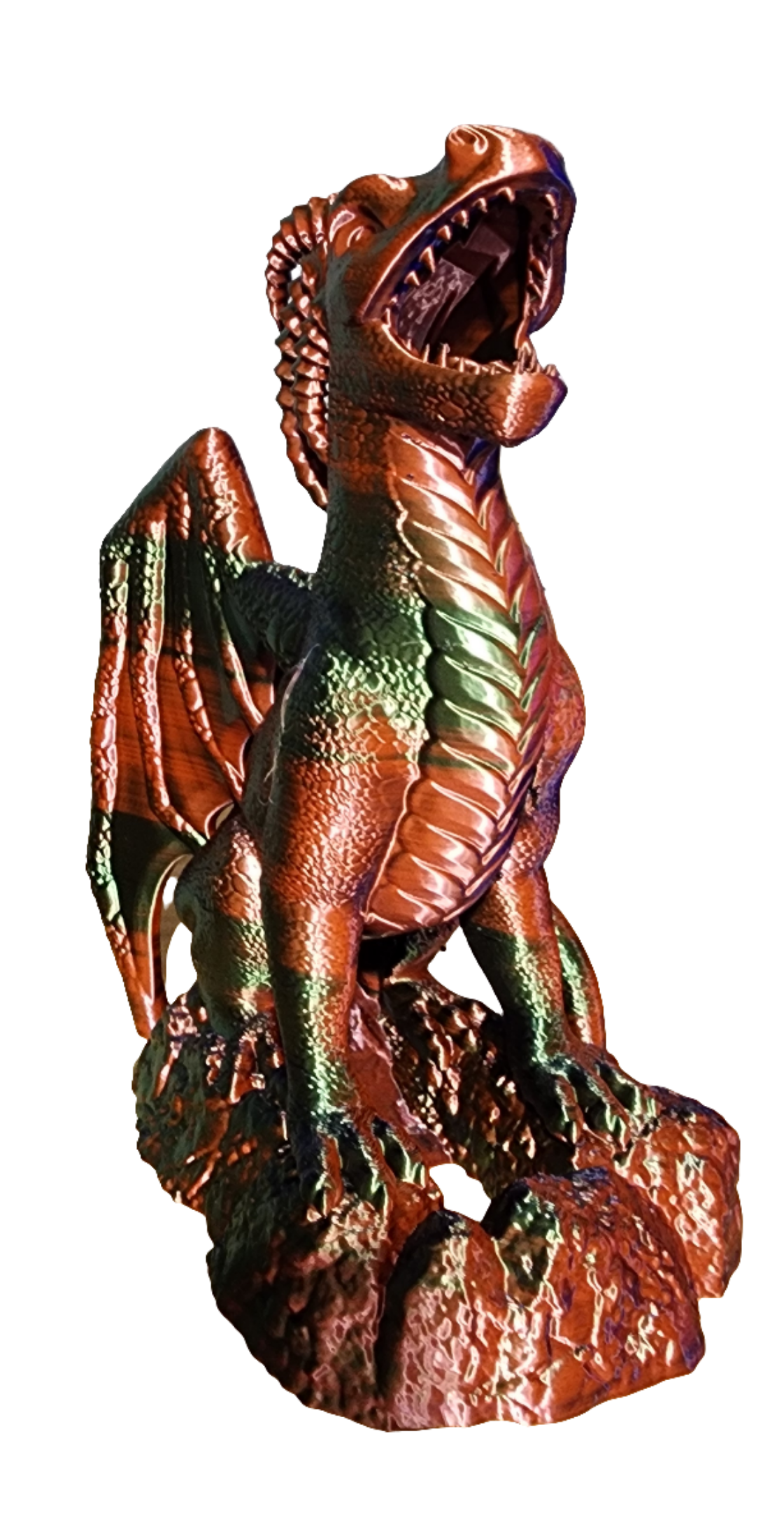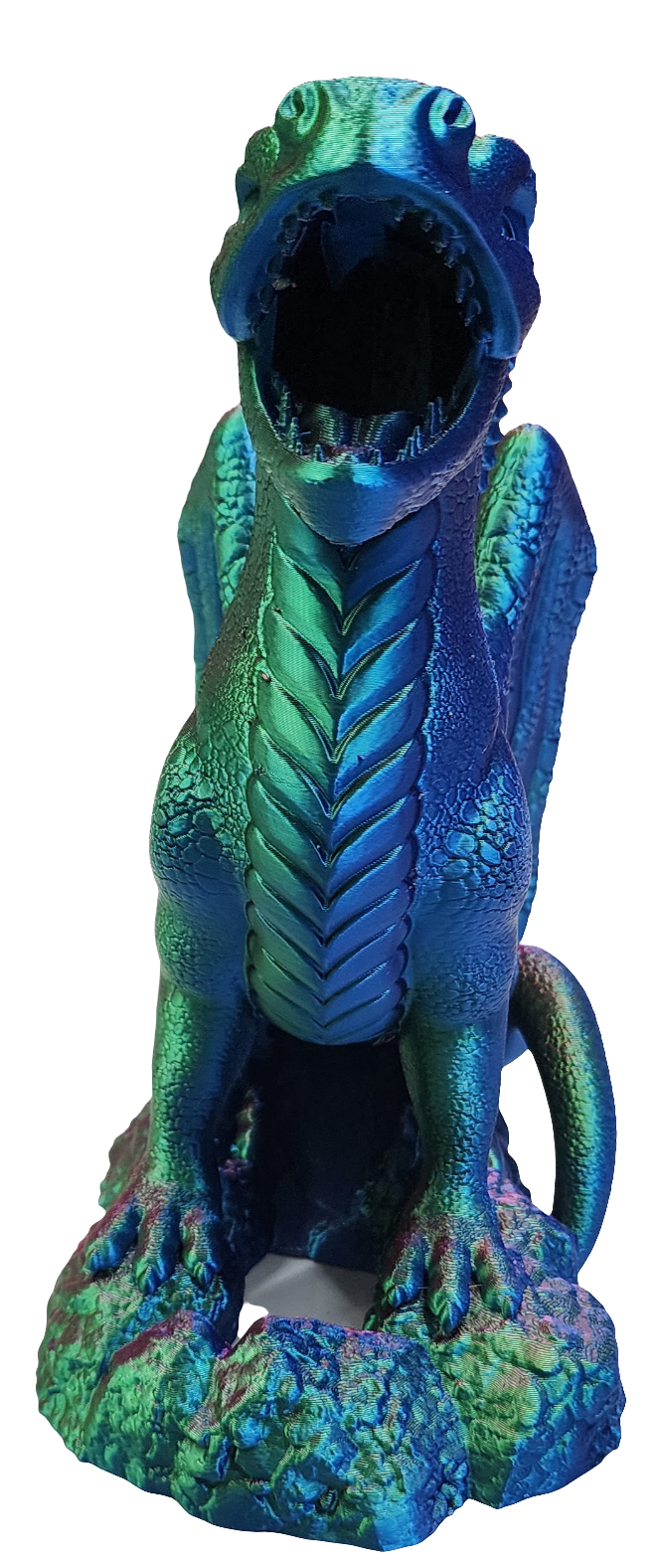 Elevate your tabletop gaming with this majestic 3D printed dragon dice tower! Featuring a dragon sitting proudly with its wings folded at its sides, its head tilted upward and mouth open to receive your dice. Watch as the dice roll seamlessly through its body and emerge from the front, adding a touch of fantasy and drama to every roll. A perfect blend of functionality and striking design, it’s an ideal addition to any D&D or tabletop gaming collection!