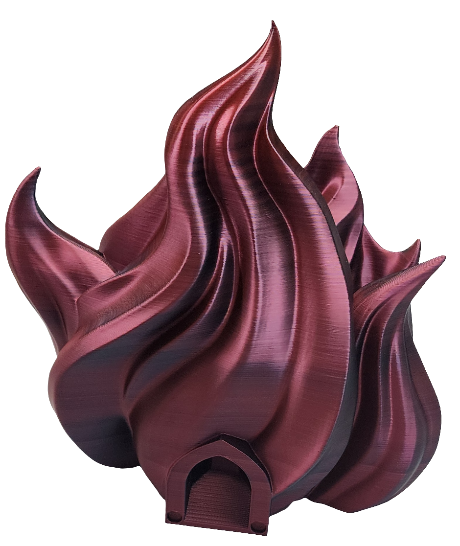 Ignite your tabletop adventures with this enchanting Wizard’s Flaming Dice Tower! Shaped like a towering flame, this striking design features a hole at the top back for dropping dice, which then roll through the fiery structure and emerge dramatically from the front door. Perfect for D&D and fantasy enthusiasts, it’s a functional masterpiece that adds magic and flair to every roll.